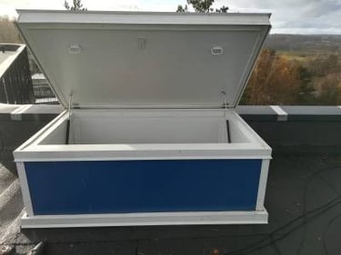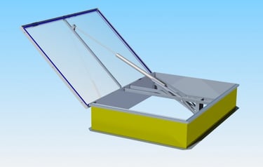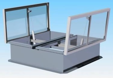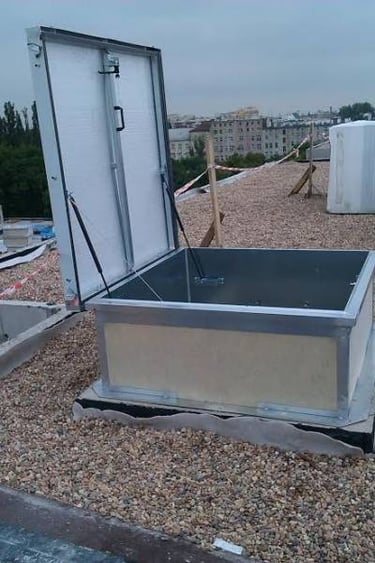 Dūmų šalinimo liukai. Gali būti su elektrinėmis pavaromis, skaidriu ar skardiniu dangčiu. Gaminama su apšiltinimu iš akmens vatos plokščių. Gaminame pagal individualų užsakymą. Tinka renovuojamiems ir naujai šiltinamiems stogams. Minimalūs išmatavimai 1000×1000 mm. Aukštis 300mm. KAINA nuo 550eur + pvm.